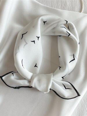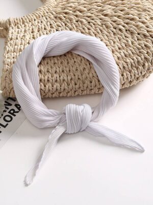 Косынка гофре из шифона, сливочная в фактурный горошек